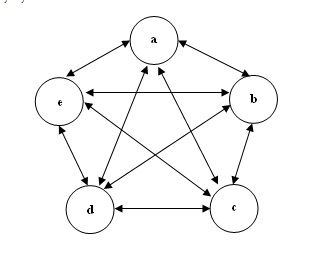 การพิสูจน์แบบตรรกวิทยานิรนัยของยุคกลางมีการอ้างวนเวียนกันได้ เปรียบเหมือนคน 5 คน ตกจากเครื่องบินพร้อมกันต่างคนต่างช่วยพยุงกันและกัน โดยไม่มีใครเป็นหลักได้เลย ผลก็คือตกลงสู่พื้นดินพร้อมกัน และตายด้วยกันทั้งหมด การพิสูจน์แบบตรรกวิทยานิรนัยของยุคกลางอาศัยอ้างกันและกันดังผังที่แสดงข้างล่างนี้ สมมุติว่ามีความรู้อยู่ 5 ข้อ (แต่ความจริงแล้วมีจำนวนนับพันนับหมื่นทีเดียว) ต่างก็ใช้เป็นข้ออ้างสนับสนุนกันและกันได้ เช่น A สนับสนุน B, C, D และ E ส่วน B ก็สนับสนุน A, C, D และ E ฯลฯ
