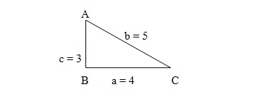 สมมุติสามเหลี่ยมมุมฉาก ABC มีความยาว 3, 4 และ 5 หน่วยตามลำดับ